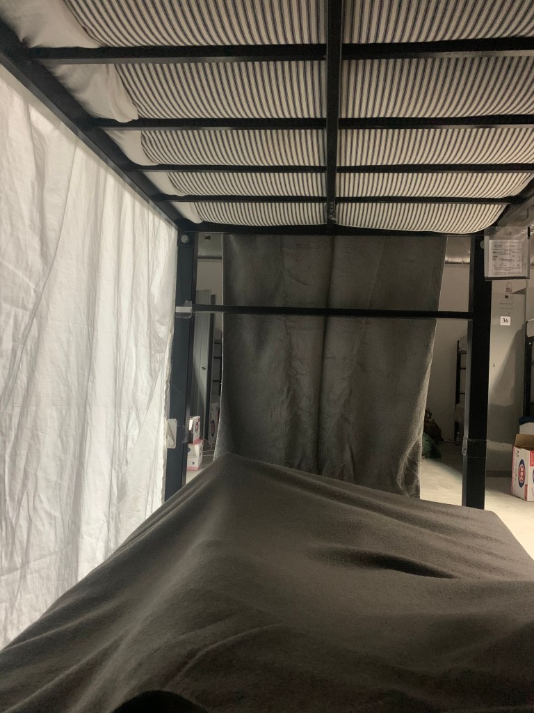 I left the building and ventured down the uneven walkways between barracks, searching for the room number on my ticket. I found building 1154 at the very end (naturally) and walked inside with my heap of bags and bundle of linen. Multiple bunkbeds and wall lockers spread far and wide across the open day. Soldiers lay sprawled in their bunks with their numerous bags placed around and sheets hanging from their beds like curtains. I walked between the bunks and soon found mine somewhere in the middle, staking my claim.