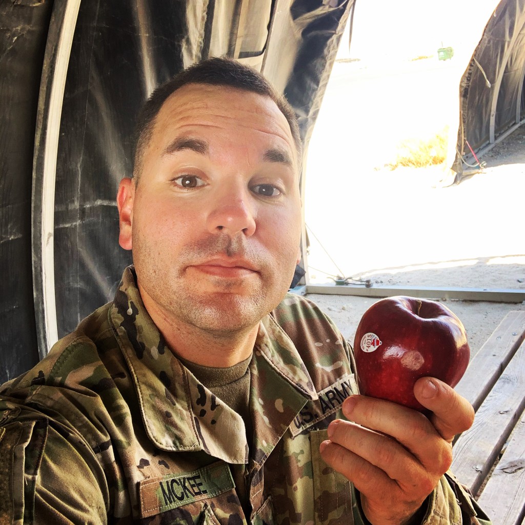 I later located the dining facility for lunch, wearing a fresh uniform, my patrol cap, sunglasses, mask, and large novelty clock around my neck. With the next stop in my journey hours away, I felt restless. Or maybe it was hunger. There was a line inside the DFAC that reached far back to the entrance door. All the chairs had been removed from the dining room, leaving only empty tables roped off from usage. Someone really didn’t want people eating inside. The line eventually split into two for main line and short order. We couldn’t tell what was being served in either, so it was a gamble. I opted for the short order line and filled my styrofoam to-go box with fresh chicken strips and a salad. I had chosen…wisely.