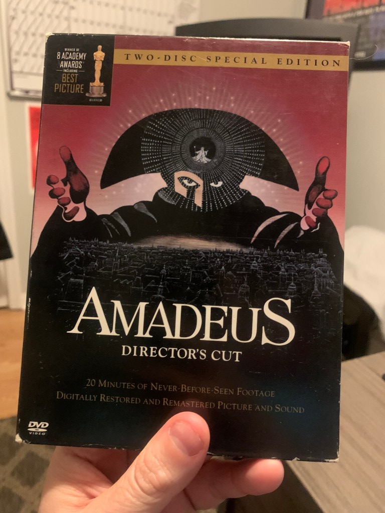 “A composer who allegedly hates you,” I added. “Is it true?” I reached into my coat pocket and produced a DVD copy of Amadeus. Mozart took the strange, foreign object and studied it intensely. He then returned to his piano and held up the bottle of wine.