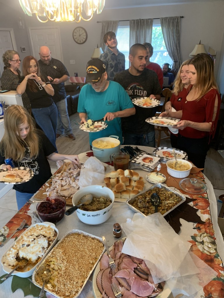 A large family gathering followed at the Palm Bay house for Thanksgiving. Siblings, cousins, nieces, nephews, aunts, and uncles who hadn’t seen each other in ages all came together. From his wheelchair at the table, my dad delivered a heartfelt toast in appreciation for us being there.