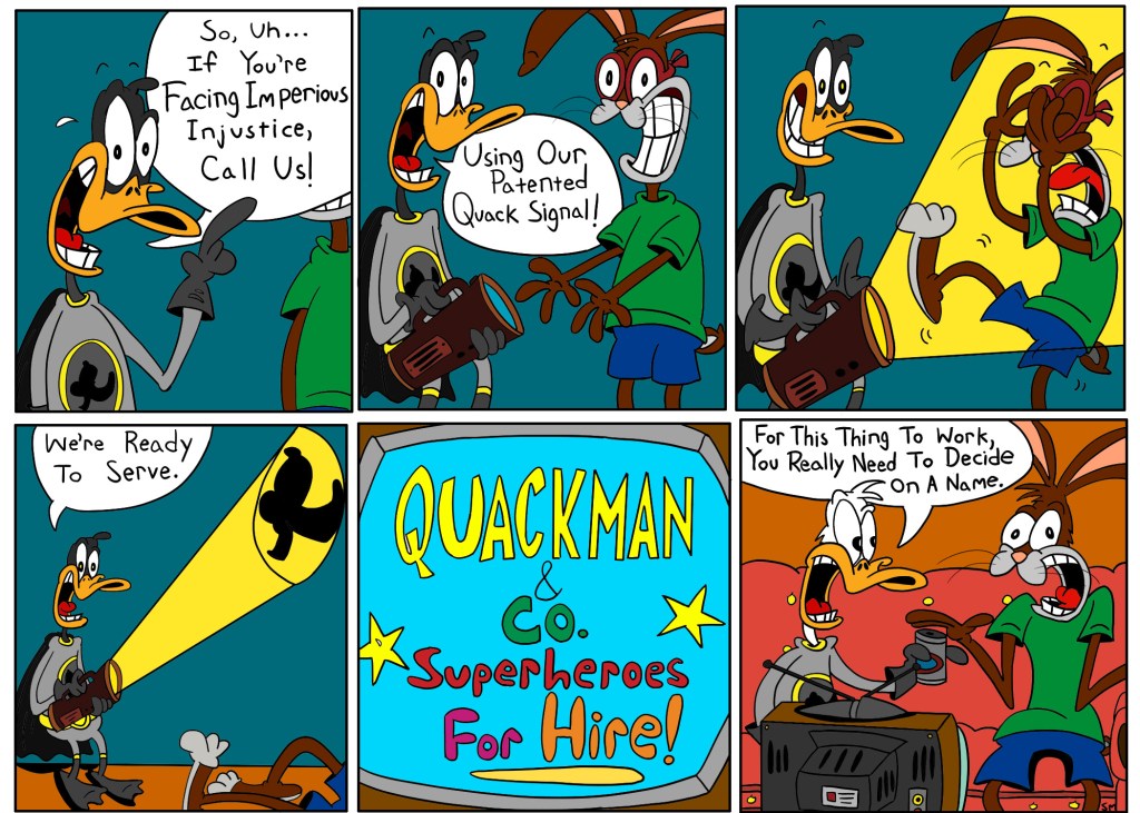 Introducing Quackman–and his loyal sidekick, who hasn’t picked an alias yet.